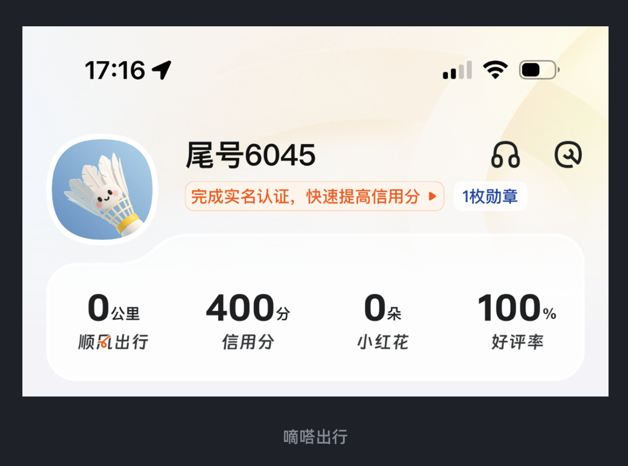 個(gè)人中心是所有 APP 的 “標(biāo)配模塊”,但多數(shù)設(shè)計(jì)仍難逃 “頭像 + 列表” 的呆板布局,要么頭像過(guò)大導(dǎo)致周圍負(fù)空間浪費(fèi),要么頭像過(guò)小失去視覺焦點(diǎn)。嘀嗒出行的個(gè)人中心設(shè)計(jì),卻用一個(gè)巧妙的 “結(jié)構(gòu)嵌合” 思路打破了這種局限。