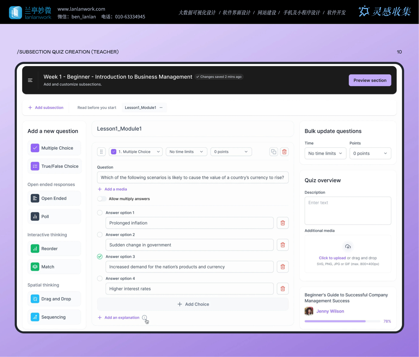 按鈕,操作反饋及時又明確;老師創(chuàng)建測驗時,能選多種題型,還能添加圖片等媒體、設置答題時間和分數,滿