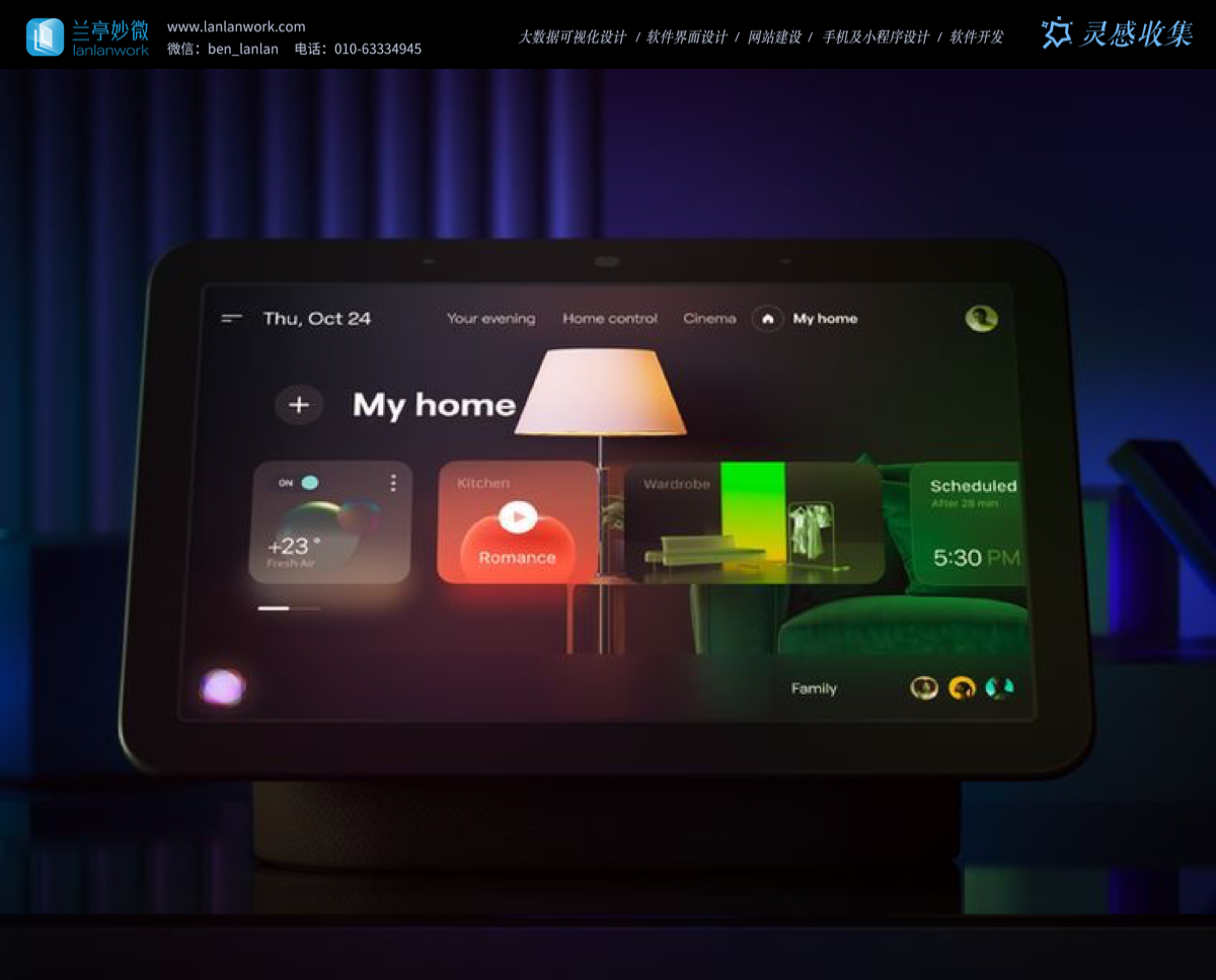 交互邏輯上,實(shí)現(xiàn) “直覺化” 與 “場景化” 雙驅(qū)動(dòng)。所有操作以按鈕、滑塊等直觀控件呈現(xiàn),同時(shí)通過 “回家、影音” 等場景卡片,將功能控制升級為場景體驗(yàn),讓用戶從 “操作設(shè)備” 轉(zhuǎn)向 “享受生活”。且界面隨平板、墻面控制屏等終端形態(tài)調(diào)整,保持交互邏輯一致性,體現(xiàn)多端協(xié)同設(shè)計(jì)前瞻。
