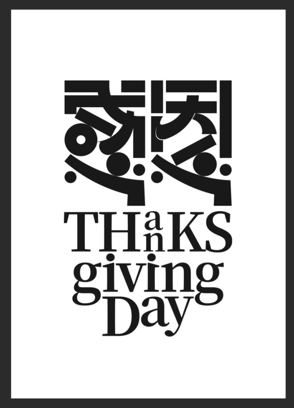 幾何化不代表 “放棄書寫邏輯”。在 “感恩節(jié)” 的 “感” 字設(shè)計(jì)中,將撇筆做 “由細(xì)到粗” 的過(guò)渡,模擬手寫時(shí) “下筆重、收筆輕” 的力道;在 “恩” 字設(shè)計(jì)中,將內(nèi)部的撇筆與豎筆做 “連筆重組”,貼合手寫時(shí) “筆畫銜接的慣性”。這種 “幾何結(jié)構(gòu) + 書寫屬性” 的疊加,讓文字既有幾何的規(guī)整,又有手寫的流暢。
