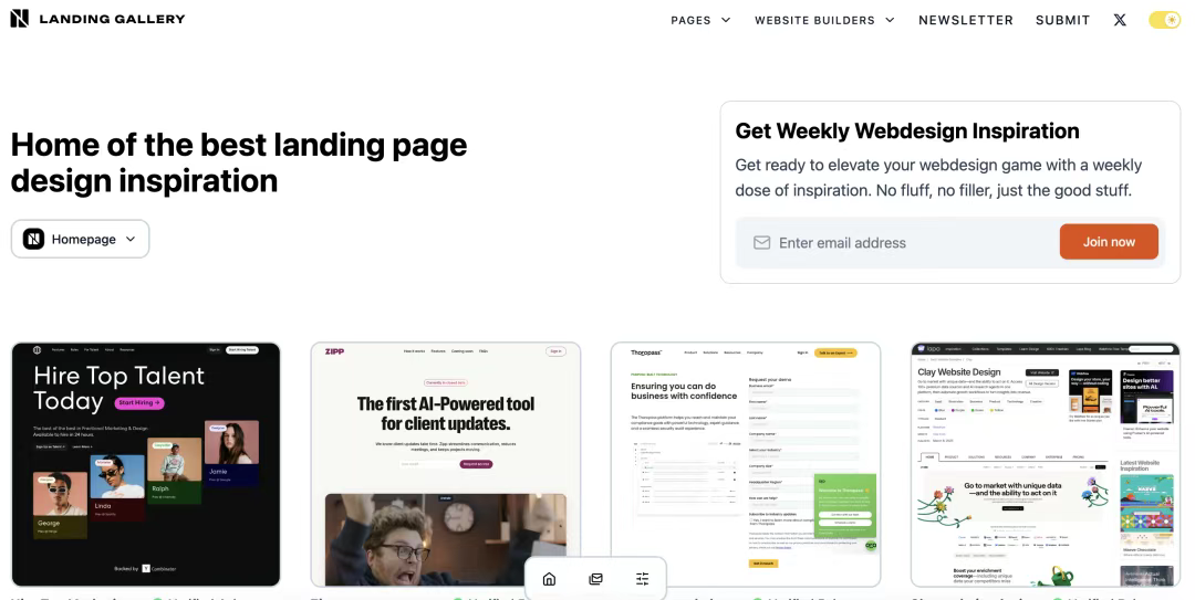 [Landing Gallery](http://landing.gallery) 專注于提供各個(gè)領(lǐng)域的著陸頁(yè)設(shè)計(jì)靈感。無(wú)論你需要設(shè)計(jì)什么類型的頁(yè)面,從主頁(yè)、定價(jià)頁(yè)面到聯(lián)系頁(yè)面,甚至是404錯(cuò)誤頁(yè)面,這里都能找到優(yōu)質(zhì)的參考案例。