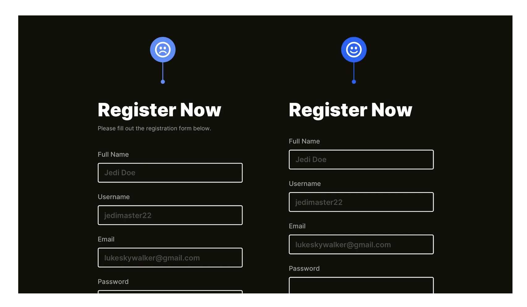 用戶填寫表單時,最怕填完一堆內容才發(fā)現(xiàn)某個字段出錯。在用戶輸入的過程中,就要給出即時反饋。