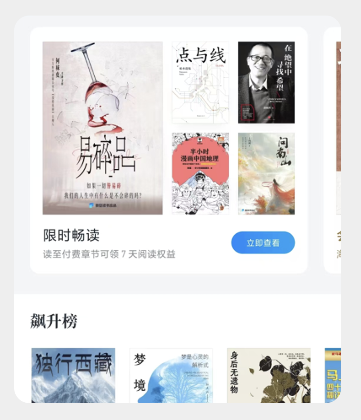 比如電商的商品卡片、旅游 APP 的風景圖卡片、閱讀平臺的圖書推薦卡,圖片占比最大,搭配簡短的標題、價格、亮點標簽,輔助提升轉化意愿。