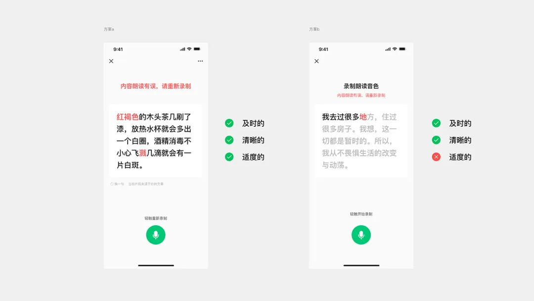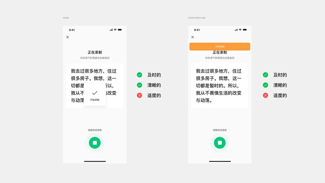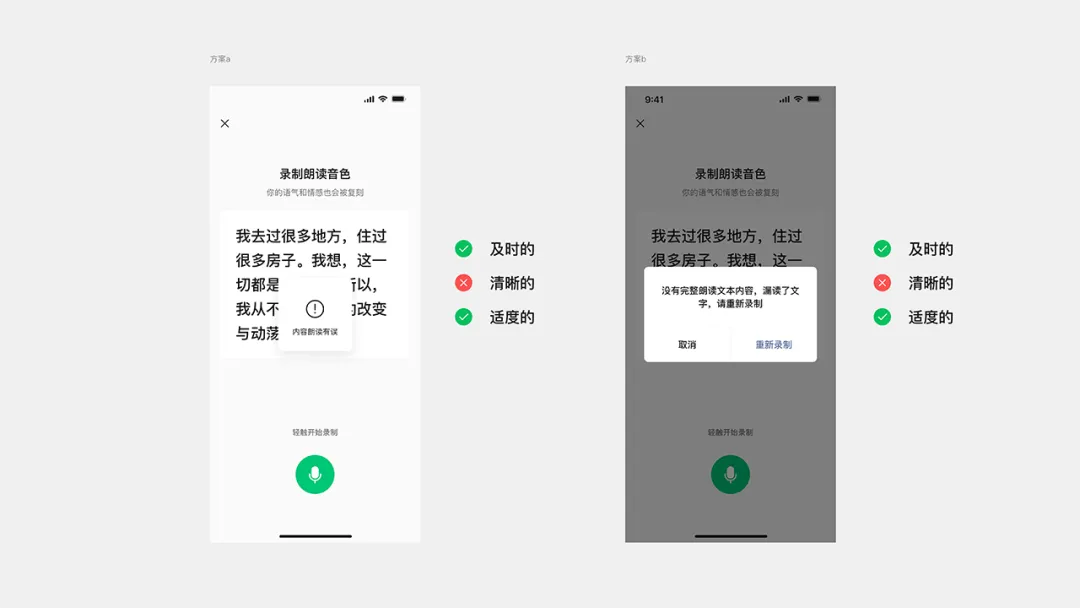 接下來(lái)我“創(chuàng)作者音色復(fù)刻”項(xiàng)目中以兩個(gè)具體場(chǎng)景來(lái)真實(shí)項(xiàng)目中設(shè)計(jì)反饋表現(xiàn)的應(yīng)用以上原則的設(shè)計(jì)與決策過(guò)程: